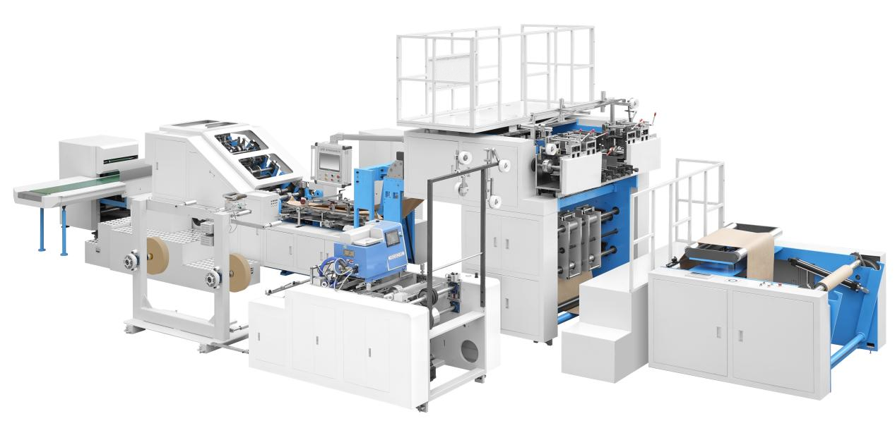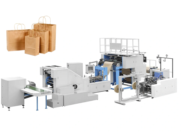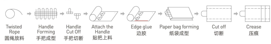 Fully automatic square bottom paper bag machine is used to produce hand-held paper bags with hand handles. This machine is especially suitable for the bulk production of shopping bags in food and clothing industries. The machine by hand holding machine will roll of rope and paper roll system arm in arm, arm in arm through the transmission system to put the unit will be primary or printed roll paper twine again a preliminary point break, patch glue, automatic paste hand wan, again by the host with a hand holding the paper to the edge glue, into the bottom of the cone, cutting, creasing, glue, bag forming and piped out of the bag, The whole process is done simultaneously at once. This machine adopts Japanese mitsubishi imported high speed motion controller (CPU), through the high speed bus control servo operation, to ensure stable movement, smooth motion curve, is the majority of printing and packaging manufacturers preferred automatic portable square bottom paper bag equipment.