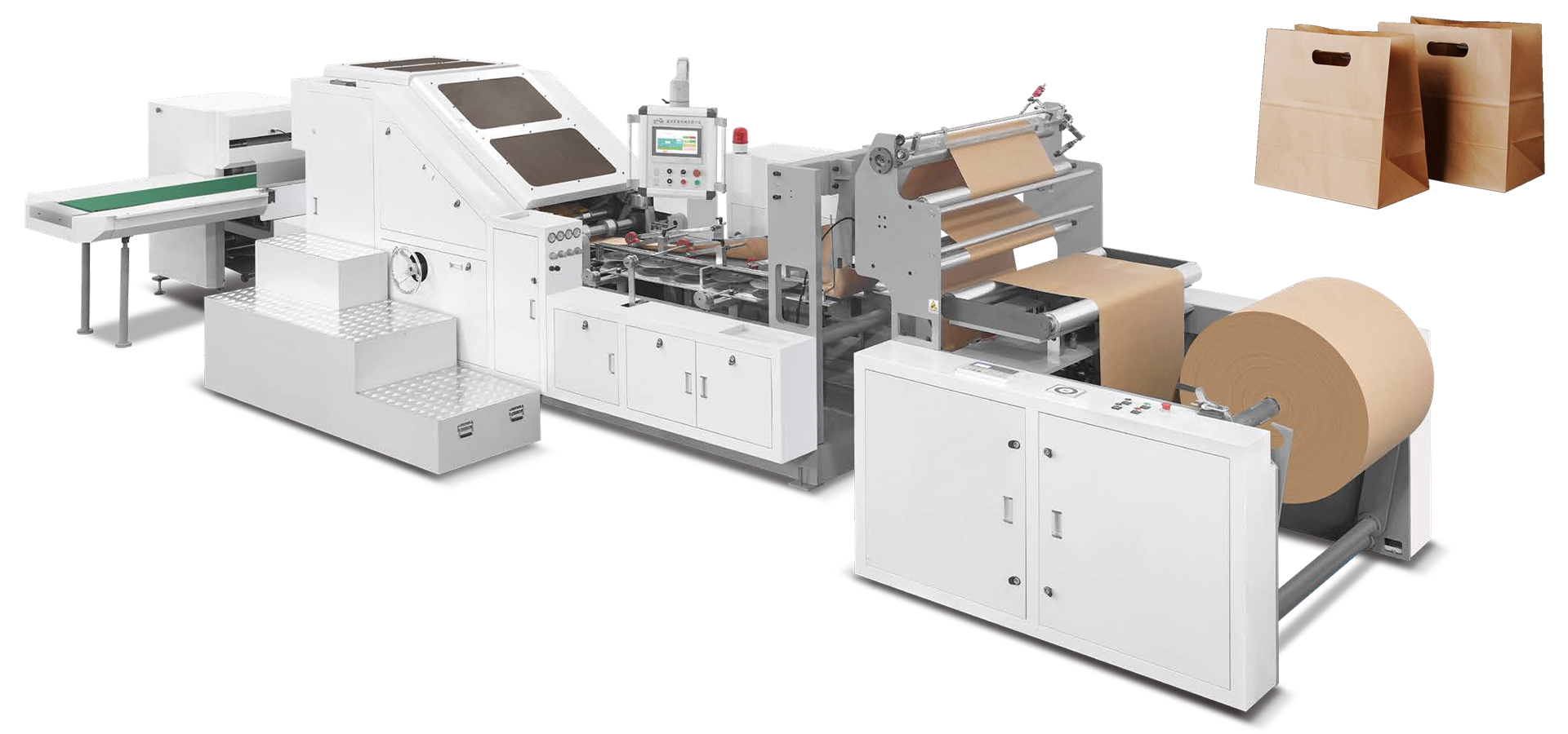 Rolling feed d cut paper bag machine, it uses paper roll in blank or printed asraw material. consists of automatic centre forward glue, fixed length and cutting, bottom indentation, folding bottom, bottom glue. Bag bottom forming, finished bag collecting onetime,The machine is more convenient, more efficient, more stable, can produce a variety ofdifferent paper bags, leisure food bags, bread bags, dried fruit bags and other environmentalpaper bags.